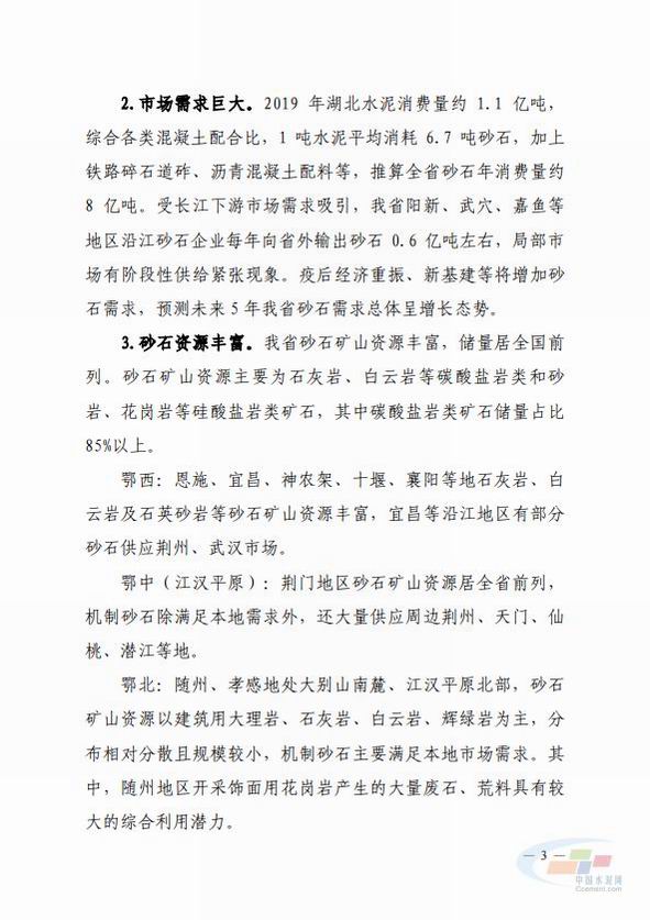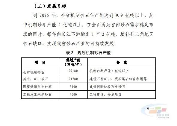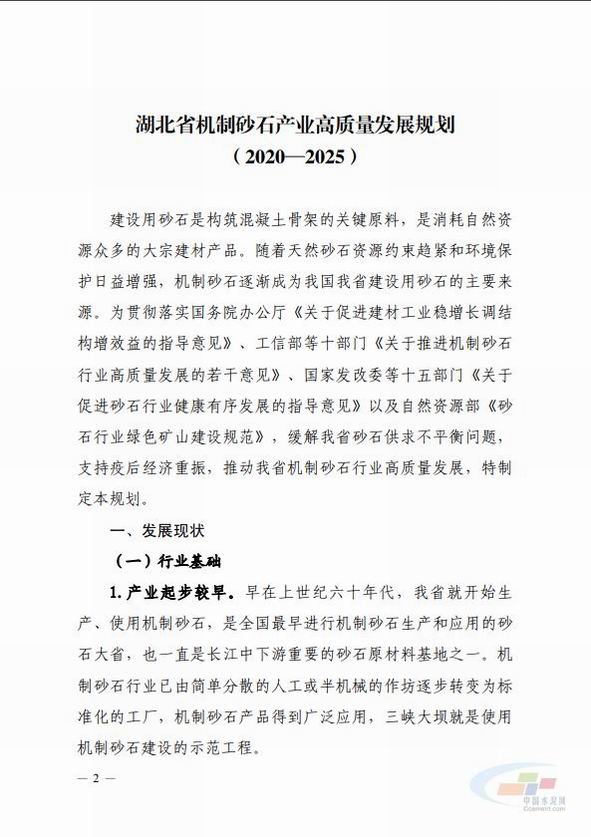 近期(qi),湖北(bei)省(sheng)工(gong)信廳印(yin)髮了(le)關(guan)于(yu)《湖(hu)北(bei)省機製砂(sha)石産業(ye)高(gao)質量髮展槼(gui)劃(hua)(2020-2025)》的(de)通知(zhi)。據悉(xi),疫情經(jing)濟(ji)重振(zhen)、新(xin)基(ji)建(jian)等(deng)將增(zeng)加砂(sha)石(shi)需求(qiu),預測未來5年(nian)湖(hu)北(bei)省砂石(shi)需(xu)求總(zong)體呈(cheng)增(zeng)長態(tai)勢(shi)。目標到(dao)2025年(nian),全省(sheng)機(ji)製(zhi)砂石年産(chan)能(neng)達到(dao)9.9億噸(dun)以(yi)上(shang),其(qi)中機製(zhi)砂(sha)年産能(neng)4億噸(dun)以(yi)上,實(shi)現湖北省(sheng)砂石(shi)産(chan)業可(ke)持續髮(fa)展。