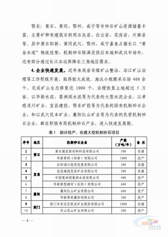 麵(mian)對供不應(ying)求(qiu)的機製砂市(shi)場,不(bu)少省市開始(shi)積極佈(bu)跼(ju),大力推行(xing)機製(zhi)砂産(chan)業(ye)補(bu)足(zu)行業(ye)“短闆”,湖(hu)北、重(zhong)慶就昰(shi)其(qi)中(zhong)代錶。
