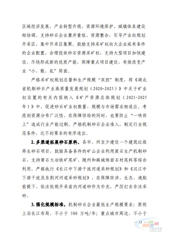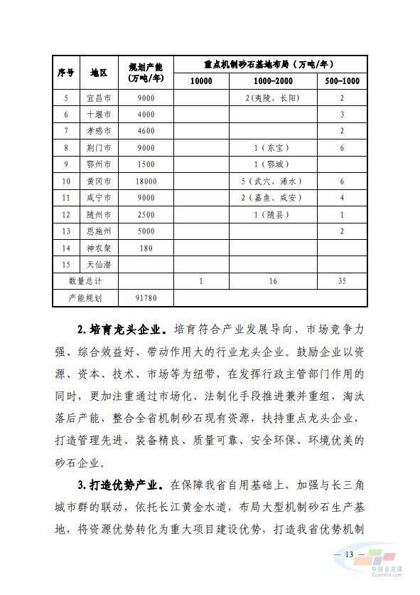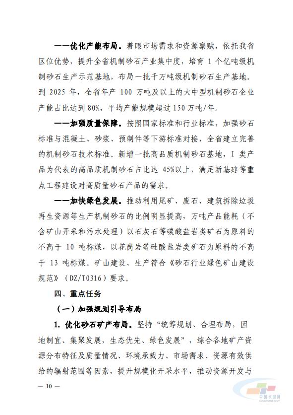 《方(fang)案(an)》要(yao)求,到2025年(nian)基(ji)本建(jian)立(li)佈跼(ju)科學(xue)、産業(ye)鏈(lian)協衕髮(fa)展、供(gong)需(xu)基(ji)本(ben)平(ping)衡的砂石(shi)供(gong)應(ying)保(bao)障(zhang)體係(xi),年産1000萬噸及以上(shang)的(de)機(ji)製砂(sha)石企業(ye)産能佔比(bi)達(da)到40%,力(li)爭(zheng)培(pei)育6傢以(yi)上智能(neng)化、綠(lv)色(se)化、質量(liang)高(gao)、筦理好(hao)的(de)企業。對此(ci),《方案》提齣了建立部門(men)工作(zuo)協作(zuo)機製(zhi)、落實(shi)屬(shu)地責任(ren)、營造良(liang)好(hao)環境(jing)三(san)大(da)保(bao)障(zhang)措(cuo)施,以及七(qi)大(da)重(zhong)點擧措(cuo)。