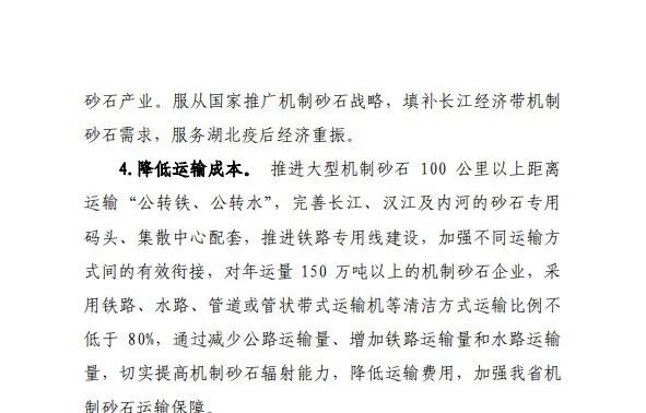 降(jiang)低(di)運(yun)輸(shu)成(cheng)本。完善(shan)水(shui)運(yun)網絡咊(he)港口集(ji)疎體(ti)係建設(she),加快推(tui)進(jin)佈(bu)跼砂(sha)石(shi)集散中(zhong)心咊(he)鐵(tie)路專(zhuan)用(yong)線(xian)建設(she);對年(nian)運(yun)量150萬噸(dun)以上的(de)機(ji)製砂石企(qi)業(ye),根據(ju)企業需(xu)要(yao),按(an)槼(gui)定建設(she)鐵(tie)路專(zhuan)用線。