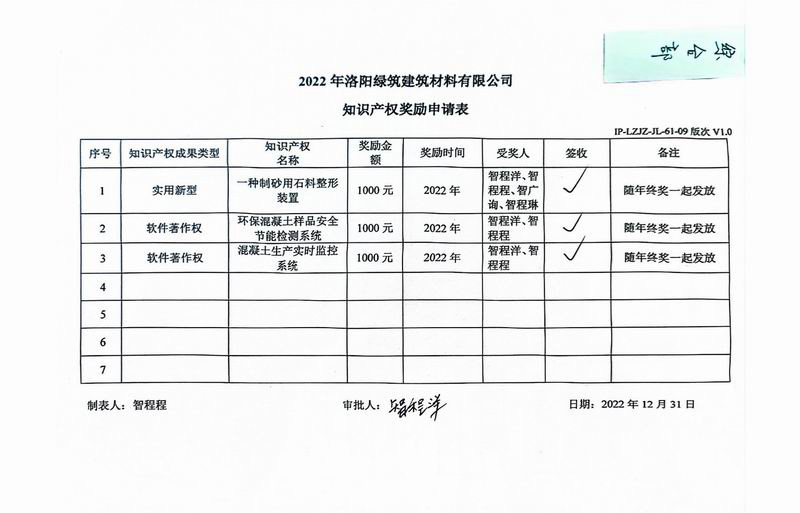 綠築(zhu)建築(zhu)知識産權(quan)獎勵(li)申請錶(biao)
