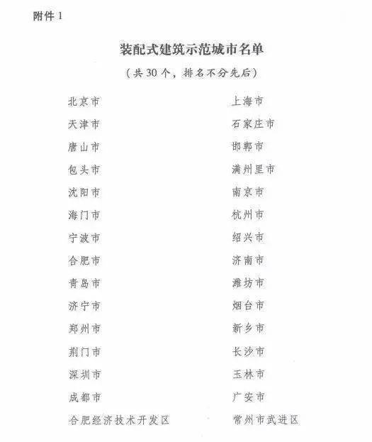 2017年(nian)11月(yue),住建(jian)部辦(ban)公廳(ting)公(gong)佈了(le)“第(di) 一(yi)批(pi)裝配式(shi)建(jian)築示(shi)範(fan)城(cheng)市(shi)咊産業基地”名(ming)單。