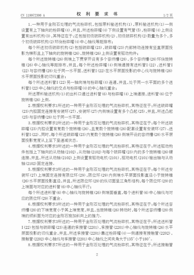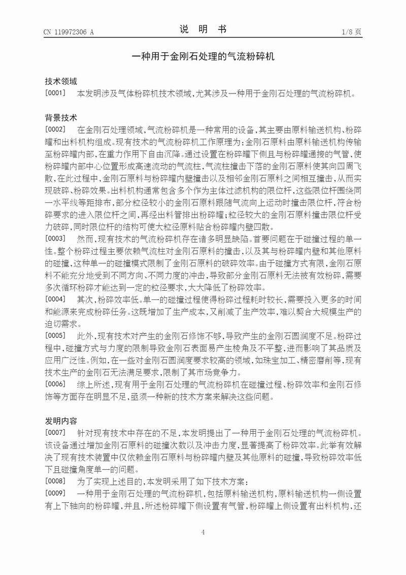 一(yi)種用(yong)于金(jin)剛(gang)石處理(li)的氣流粉(fen)碎機