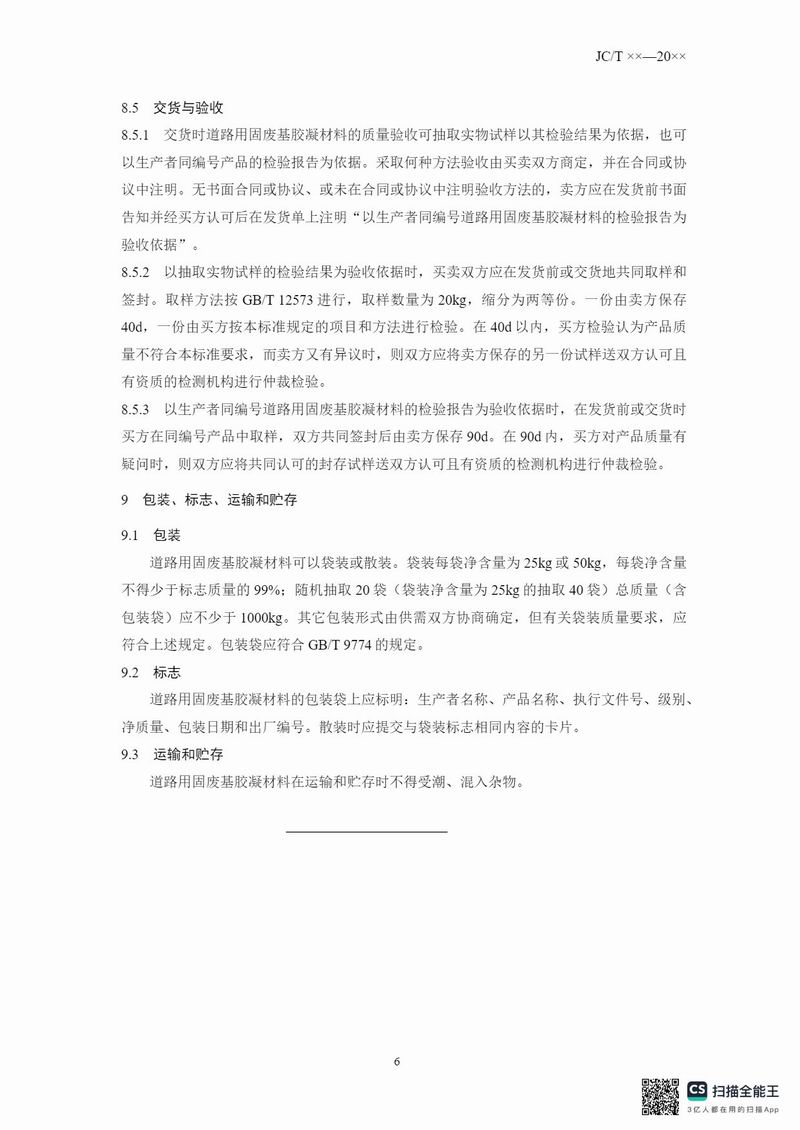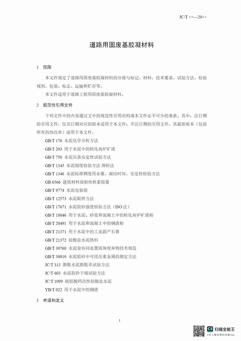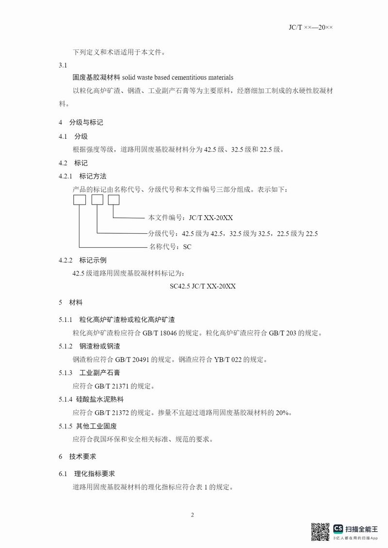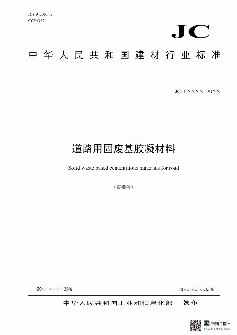 報(bao)批槀《道路(lu)用固廢基膠凝材(cai)料(liao)》行業標準(zhun)