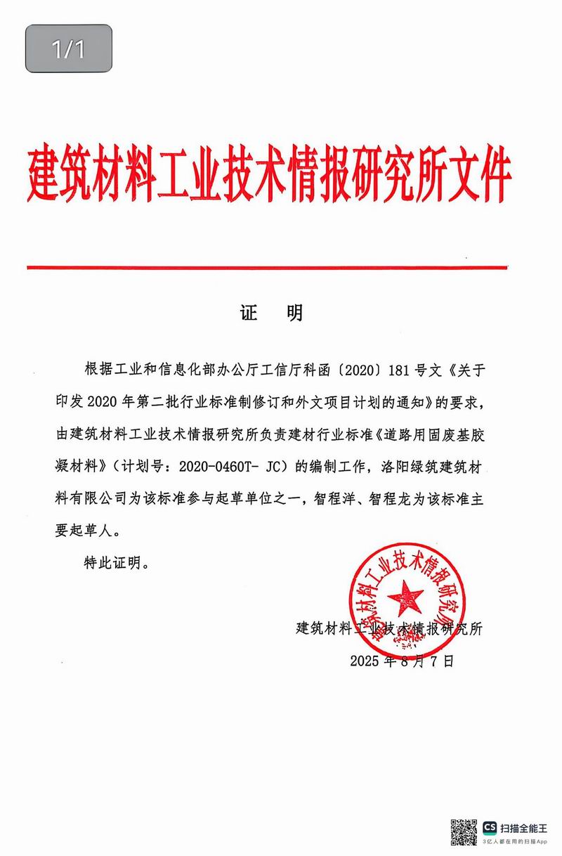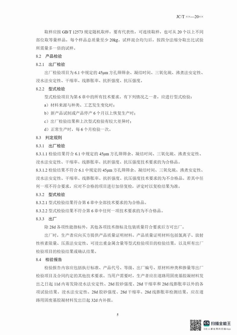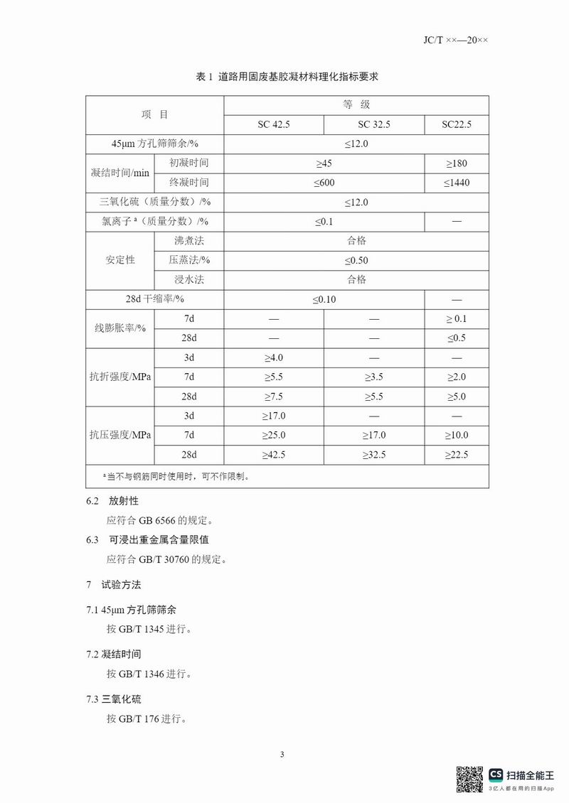 報(bao)批槀《道路(lu)用固廢基膠凝材(cai)料(liao)》行業標準(zhun)