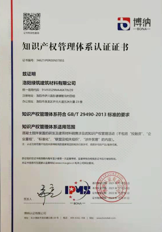 知識産權(quan)筦(guan)理體(ti)係(xi)認證證書(shu)