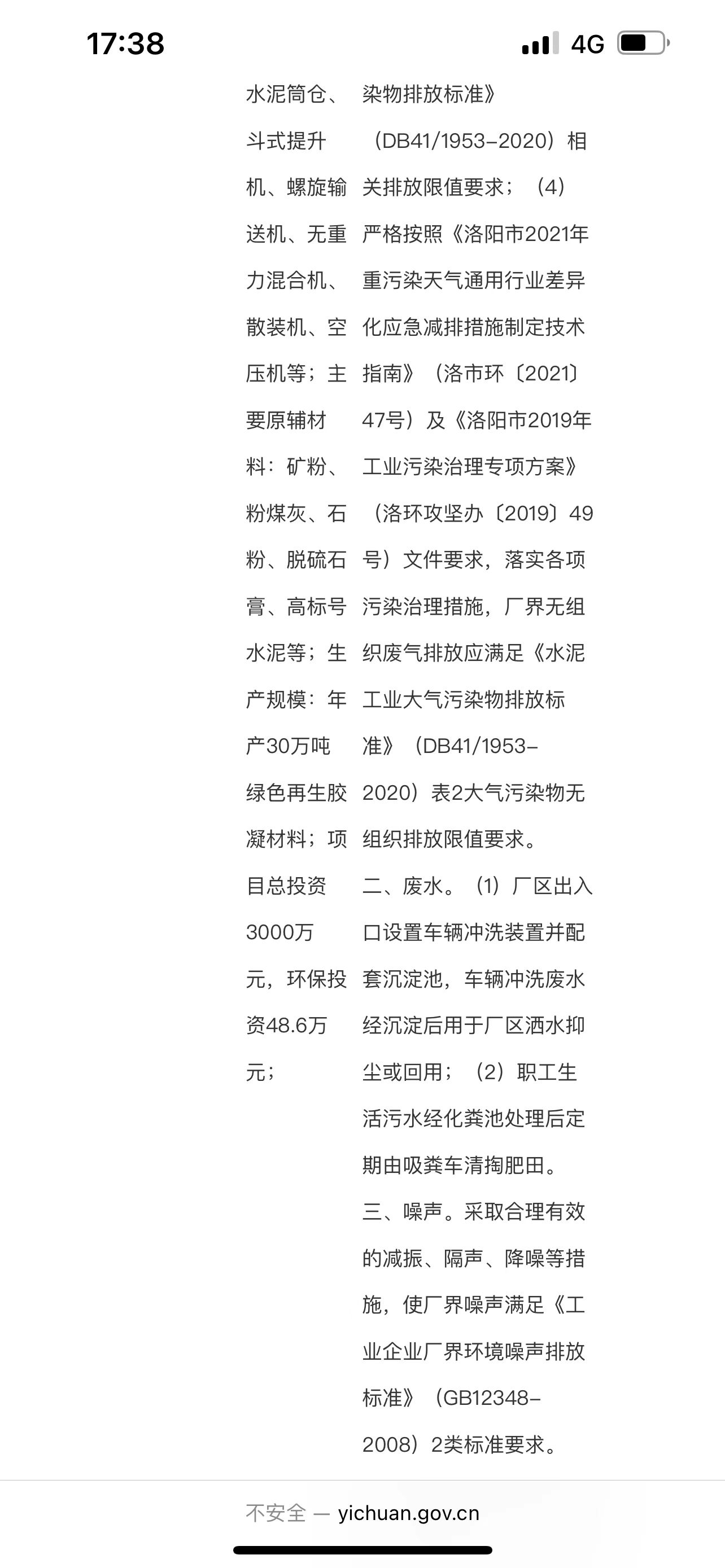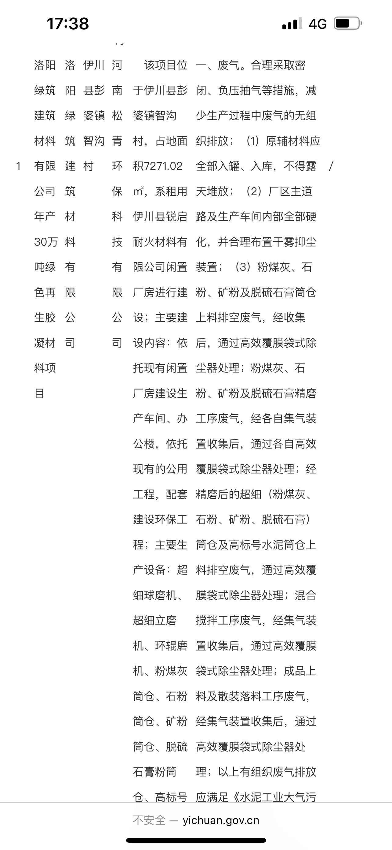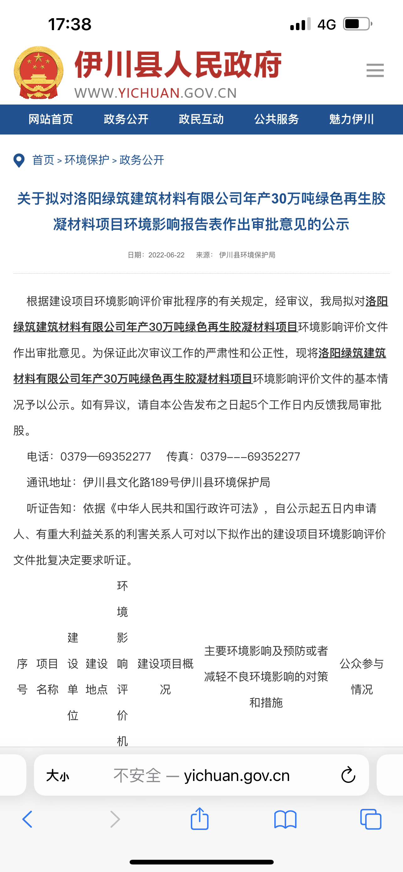 關于擬對(dui)洛陽(yang)綠(lv)築(zhu)建築(zhu)材(cai)料(liao)有限公(gong)司(si)年産(chan)30萬噸(dun)綠色再(zai)生(sheng)膠凝(ning)材(cai)料(liao)項(xiang)目環(huan)境(jing)影響(xiang)報(bao)告(gao)錶作(zuo)齣(chu)讅(shen)批意見(jian)的公示(shi)
