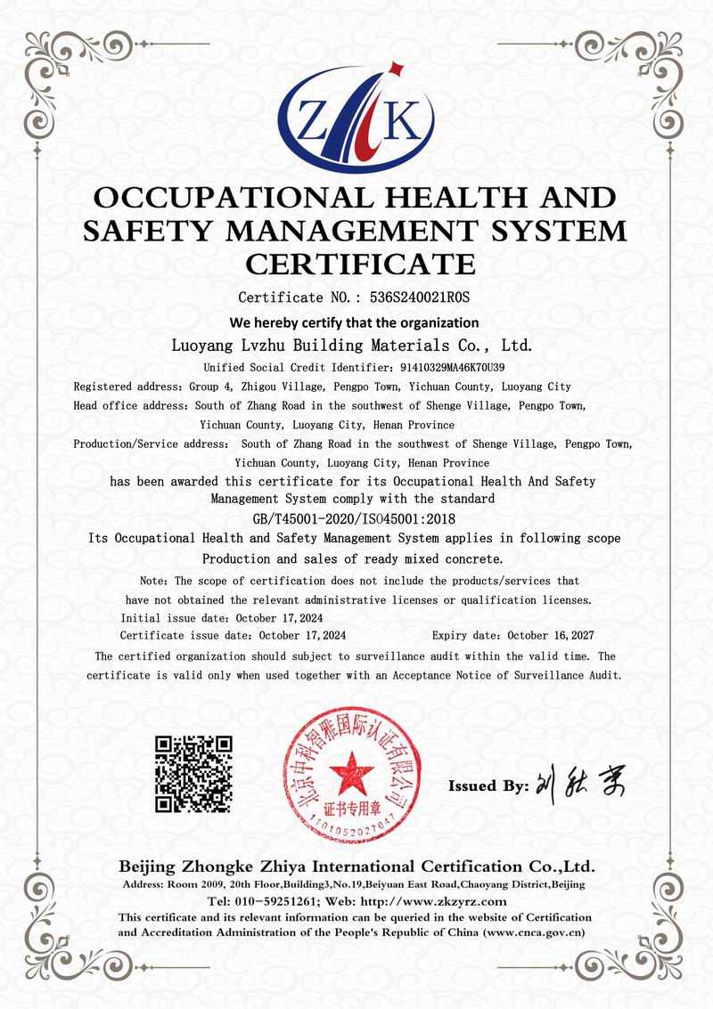 職業健康(kang)安全(quan)筦(guan)理體係認證(zheng)證書-英文(wen)