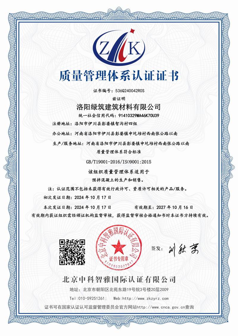 質(zhi)量筦理(li)體係(xi)認(ren)證證(zheng)書(shu)